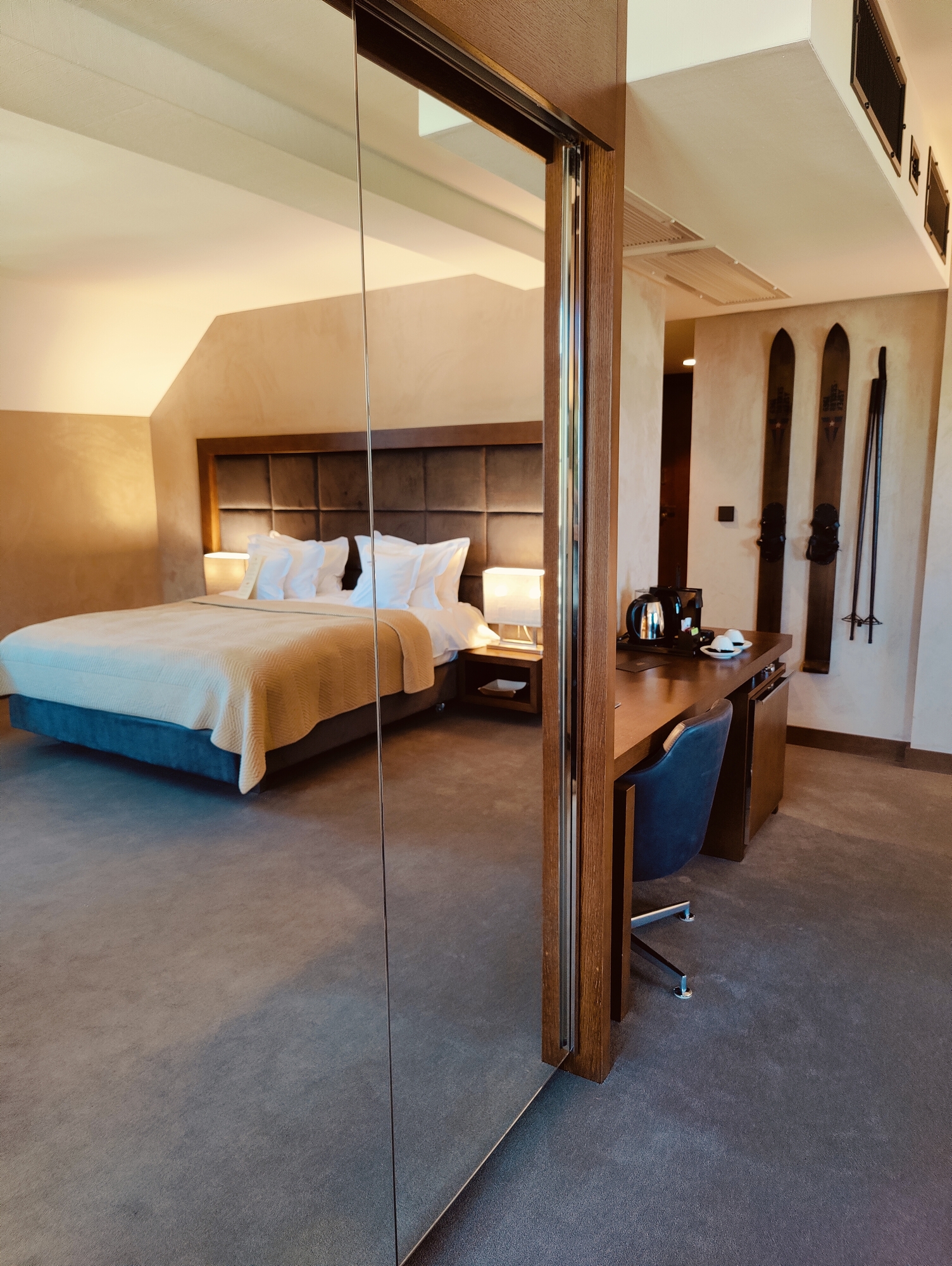 Ekskluzywny apartament o pow. 36,56 m² usytuowany na 2. piętrze prestiżowego, 5-gwiazdkowego Hotelu Seidorf. Apartament jest w pełni wyposażony, z wschodnio-południową ekspozycją i widokowym balkonem (panorama Karkonoszy i zalew Sosnówka).
